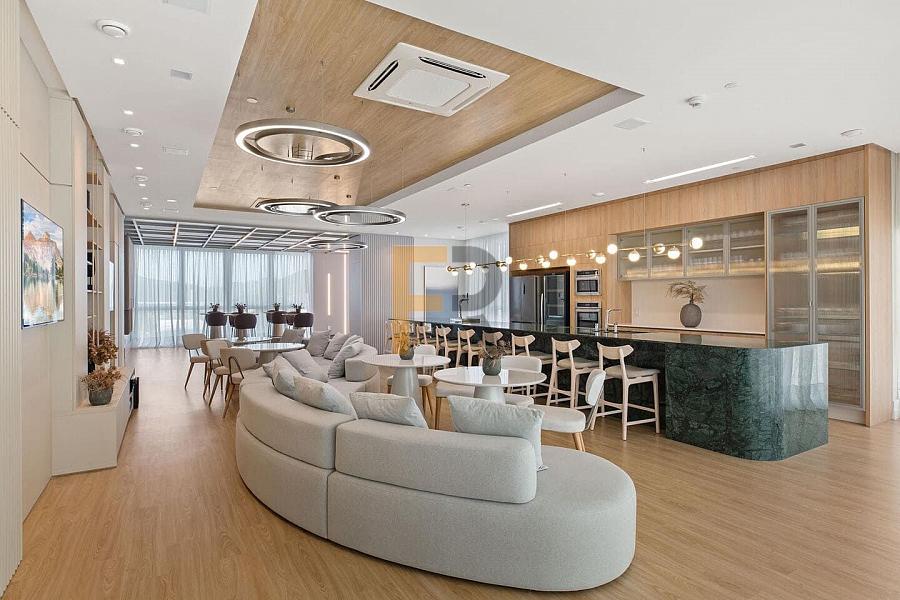 • Ampla sala de estar e jantar integradas, com design moderno e elegante